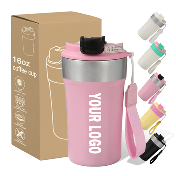Caneca de Café de Aço Inoxidável de 16oz com Design Personalizado e Logo, Copo Isolado para Viagem com Tampa Flip à Prova de Vazamentos