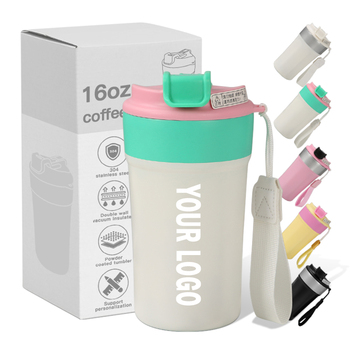 Оптовая продажа многоразовых термокружек из нержавеющей стали объемом 16 унций с двойными стенками, изолированных, с герметичной крышкой, для путешествий, в подарок